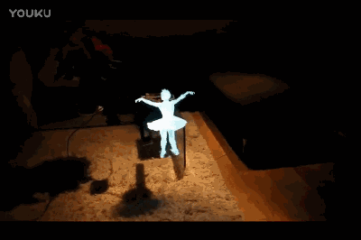 三維投影通過使用薄紗和其他一些工作來實現(xiàn)——如超細(xì)顆粒的水,氣溶膠等,利用高壓噴嘴來表現(xiàn)出真正有體積感的圖像,從技術(shù)上來講,這種技術(shù)是沒有尺寸和規(guī)模限制的,可以無限大并且可以使用跟蹤技術(shù)(深度傳感器和圖像分析)來允許觀眾和投影之間的交互。