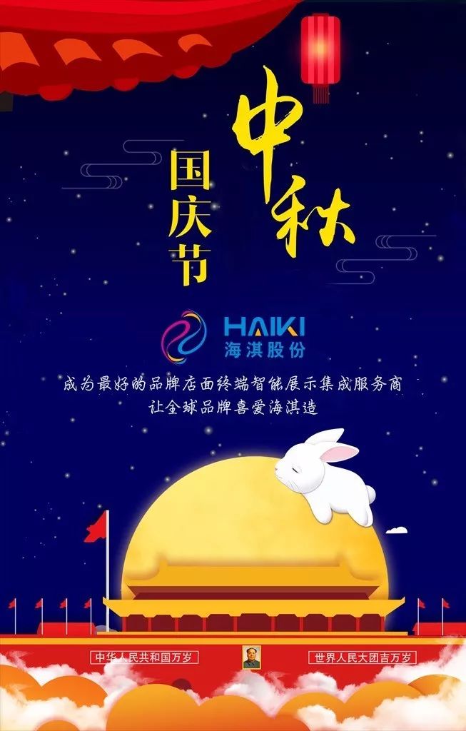 秋高氣爽時(shí),花好月圓日。在這雙節(jié)到來之際,我代表海淇股份向全體員工致以節(jié)日的問候,向堅(jiān)守在工作崗位上的員工及伙伴們表示崇高的敬意,祝大家工作順利,節(jié)日愉快。