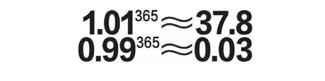 這里有一個公式,如果把0.09和1.01分別看做一個人,在一年365天同樣的時間里,你愿意做哪一個?是做0.99還是做1.01?想必大多數(shù)人都會選擇做1.01!但是,現(xiàn)實生活中,我們大多數(shù)人卻并不會真的能做到那個1.01!為什么呢?因為倦怠,因為懶惰,因為滿足于當下,因為取得了一點點的進步就沾沾自喜,固步自封!