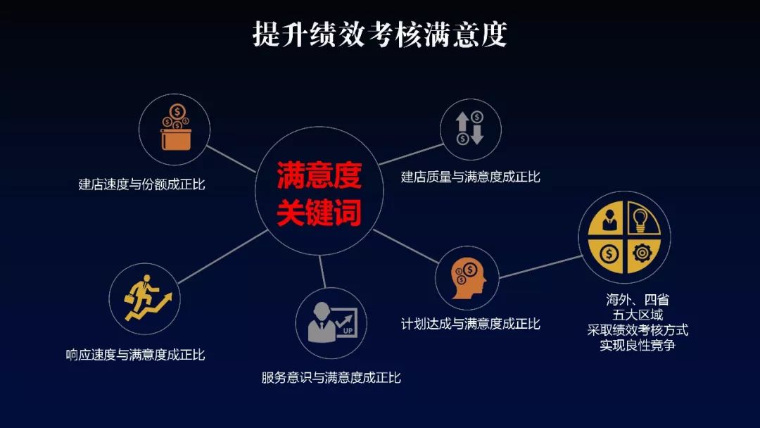 計劃達成與滿意度成正比—海外、四省五大區(qū)域采取績效考核方式實現(xiàn)良性競爭: