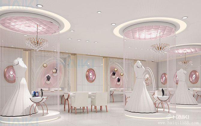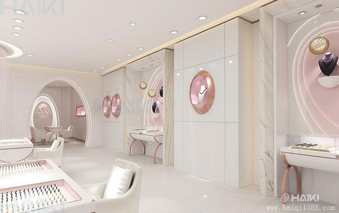 珠寶產(chǎn)業(yè)是文化經(jīng)濟產(chǎn)業(yè),珠寶產(chǎn)品市場具有物質(zhì)、金融、文化多種屬性,擁有深厚的物質(zhì)和文化基礎(chǔ),而文化內(nèi)涵是珠寶產(chǎn)業(yè)的重要價值來源。 海淇通過對珠寶行業(yè)市場的調(diào)研,在進行空間設(shè)計策劃的同時順應(yīng)珠寶產(chǎn)業(yè)當下的發(fā)展趨勢,積極發(fā)掘和踐行珠寶文化的價值,并植入更多的文化因子,努力提升品牌的文化附加值。結(jié)合品牌的文化底蘊,通過創(chuàng)意設(shè)計和精美工藝的效果呈現(xiàn)實現(xiàn)品牌情感的表達,在達到眼前一亮的視覺美感的同時,還能讓置身其中的消費者體驗到舒適、自由的氛圍。