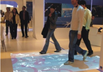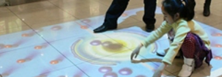 互動投影系統(tǒng)是采用先進的計算機視覺技術(shù)和投影顯示技術(shù)來營造一種奇幻的交互體驗,系統(tǒng)可在你腳下產(chǎn)生各種特效影像。讓你進入一種虛實融合、亦真亦幻的奇妙世界。該項目包括水波紋、翻轉(zhuǎn)、碰撞、擦除、避讓、跟隨等表現(xiàn)形式。觀眾通過身體動作來與地面的圖像進行互動,地面互動投影系統(tǒng)能帶給觀眾一種全新的互動體驗。